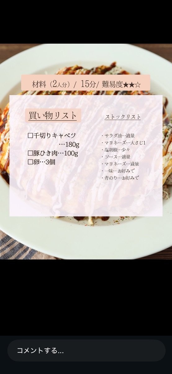 千切りキャベツ180gを加えて炒め合わせ、しんなりとしてきたら半分くらいまで炒める。