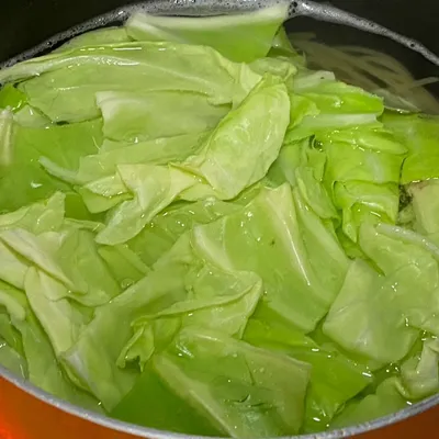 スパゲッティのゆで終わりの1分前にキャベツも加えて一緒にゆでる