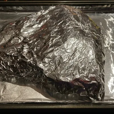 Place the wrapped brisket on the roasting pan/baking sheet.