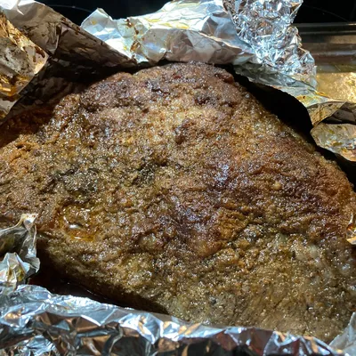 Remove the brisket from the oven.