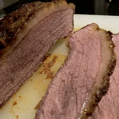 Slice the meat against the grain, and serve.